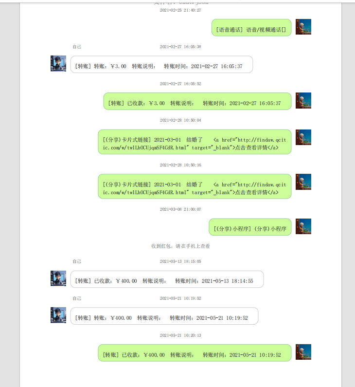日期书签功能的意外收获 在处理时间戳的过程中,我发现可以很方便地按日期给PDF添加书签。这样用户可以快速跳转到某个特定日期的聊天记录,特别适合查找历史对话。实现起来也不复杂,就是在生成PDF时按日期创建书签索引。